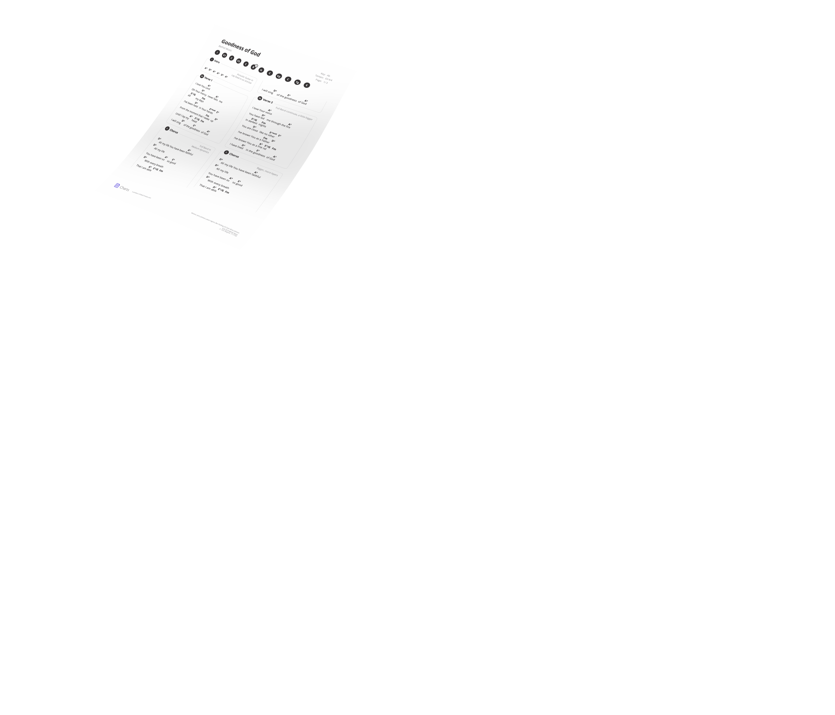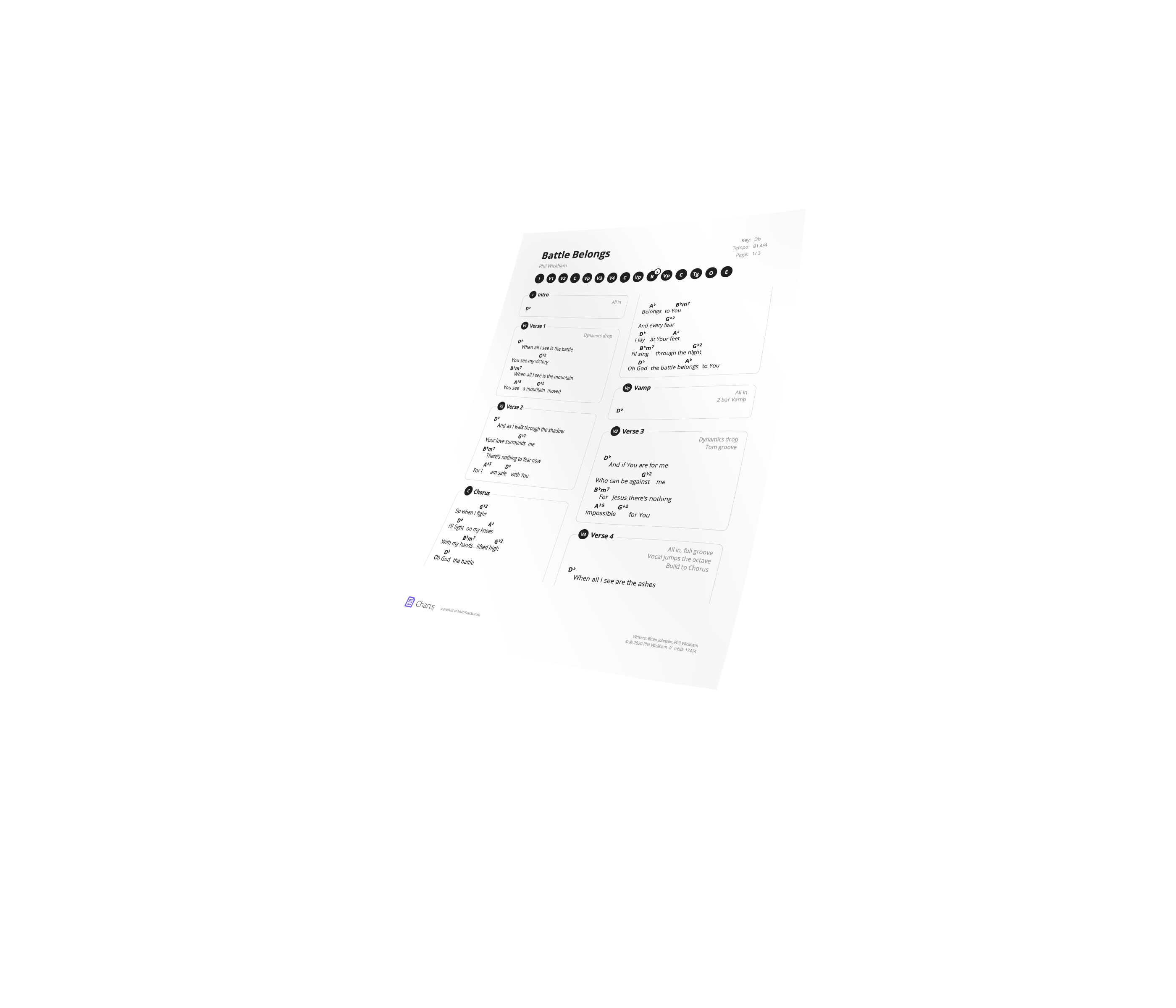 Dans ChartBuilder, vous pouvez créer une liste de chants, la partager avec votre équipe et permettre aux membres de votre équipe de personnaliser les partitions à leur convenance. Avec ChartBuilder, vous pouvez vous présenter bien préparé, avec ou sans répétition.